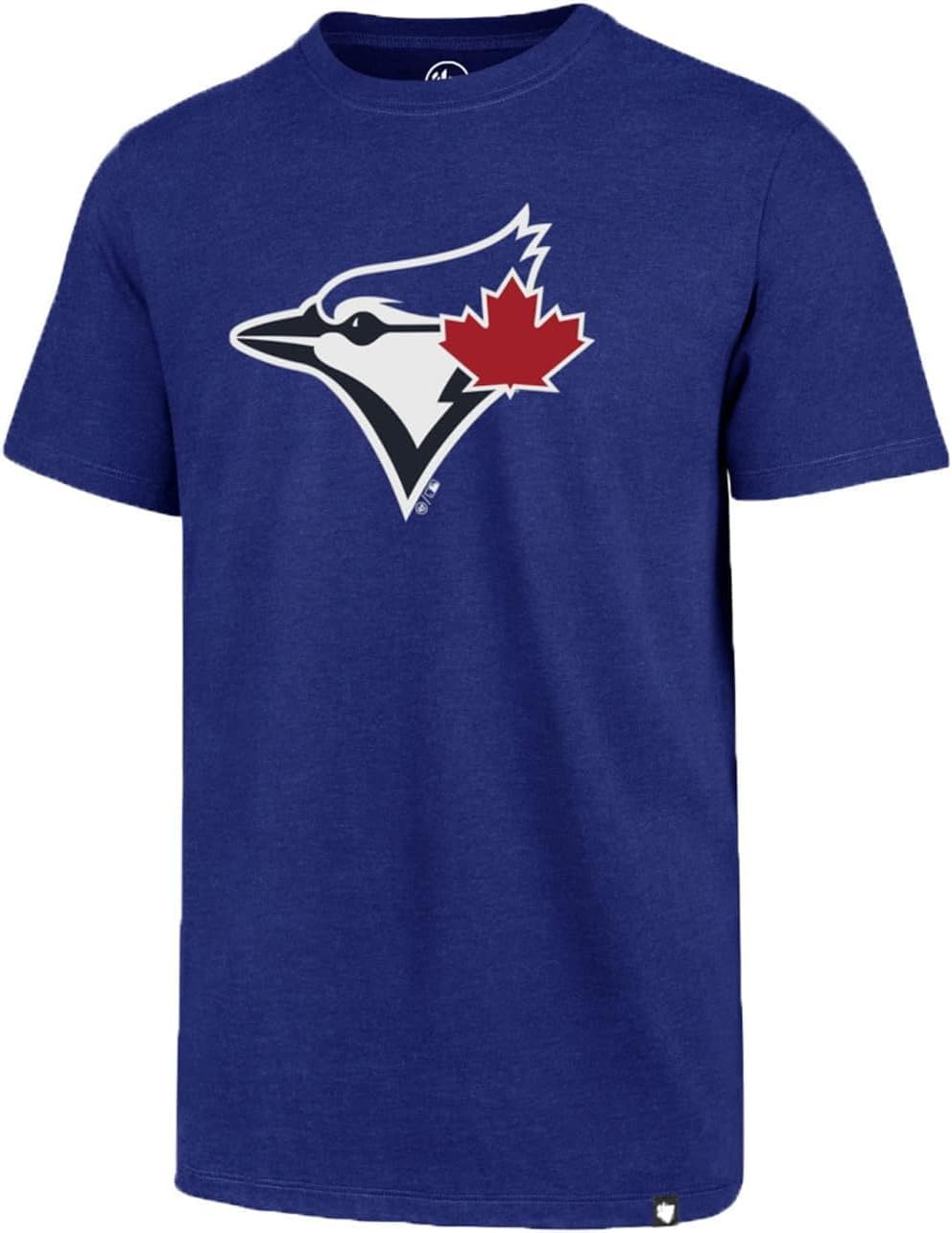 47 MLB Men’s Team Color Imprint Primary Logo Word Mark Short Sleeve Baseball T-Shirt – Toronto Blue Jays Blue Large