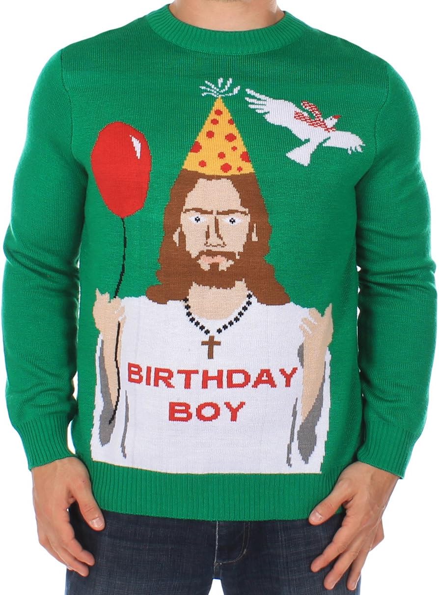 Tipsy Elves Ugly Christmas Sweaters for Men – Colorful and Funny Men’s Christmas Sweaters – Hilarious Holiday Pullovers – Men’s Green Happy Birthday Jesus Christmas Ugly Sweater Size X-Large