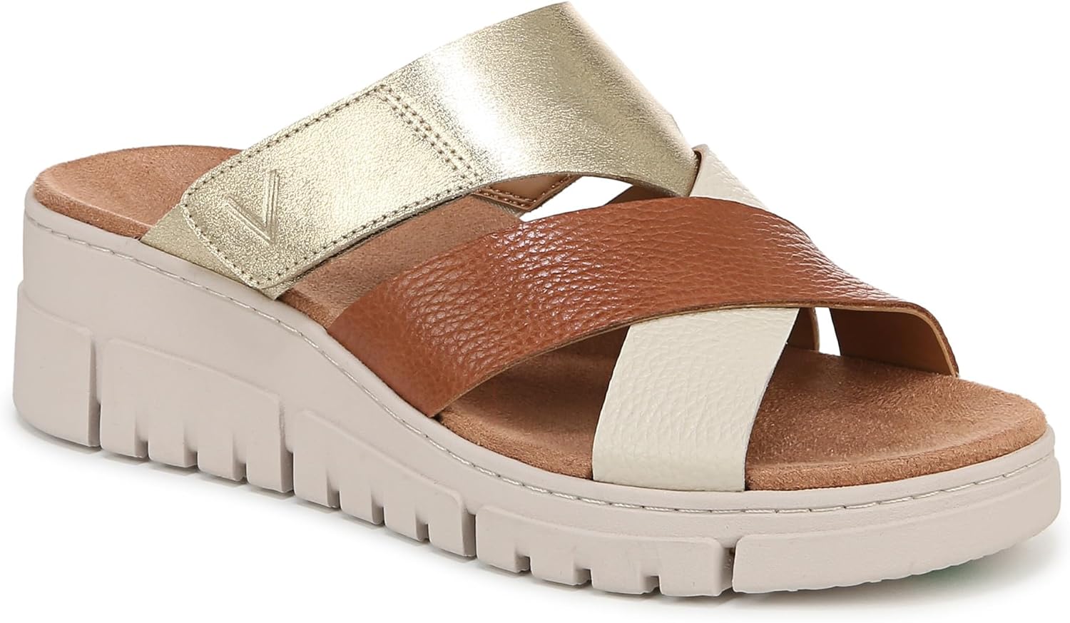 Vionic Women’s Uptown Sunset Slide Sandals, Tan/Gold Leather, 9