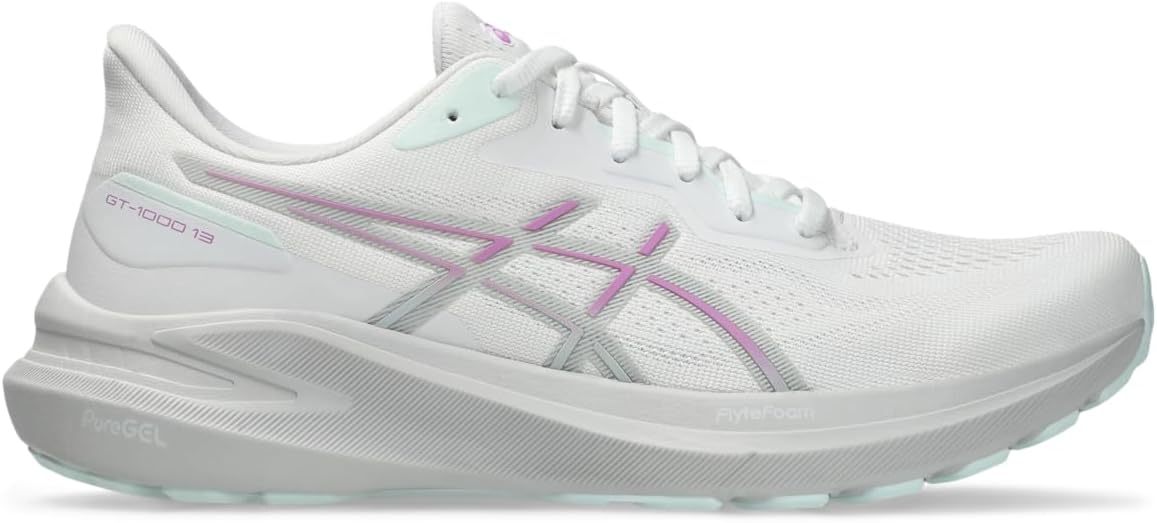 ASICS Women’s GT-1000 13 Running Shoes, 7.5, White/Lavender Glow