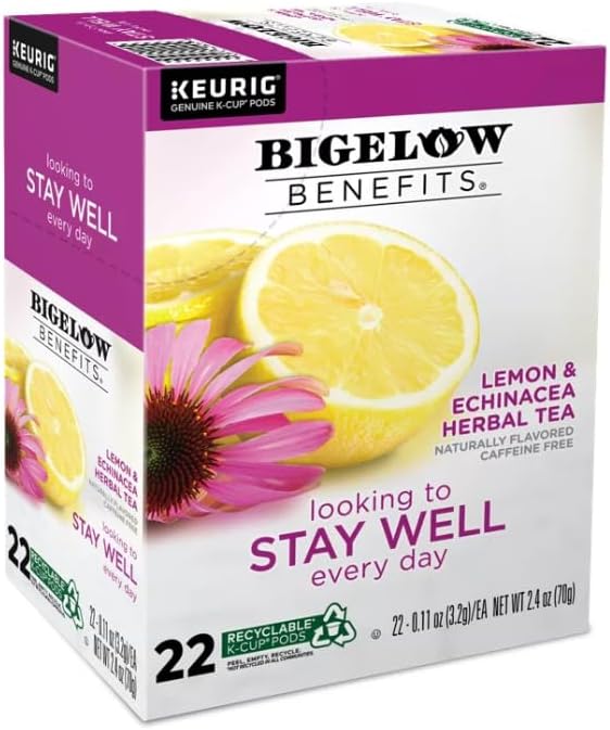 Bigelow Benefits Lemon & Echinacea Herbal Tea K-Cup Pods, 22 Count