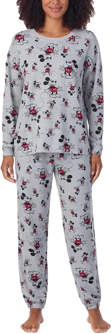 Disney Womens 2 Piece Cozy Pajama Set (US, Alpha, Large, Regular, Regular, Classic Mickey Mouse Gray)
