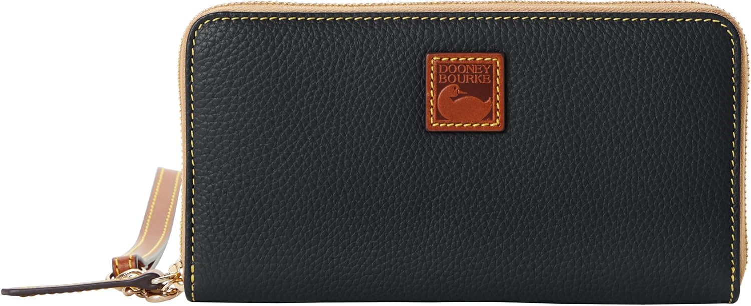 Dooney & Bourke Wallets for Women, Pebble Grain Leather Large Zip Around Wristlet with Removable Strap – Black