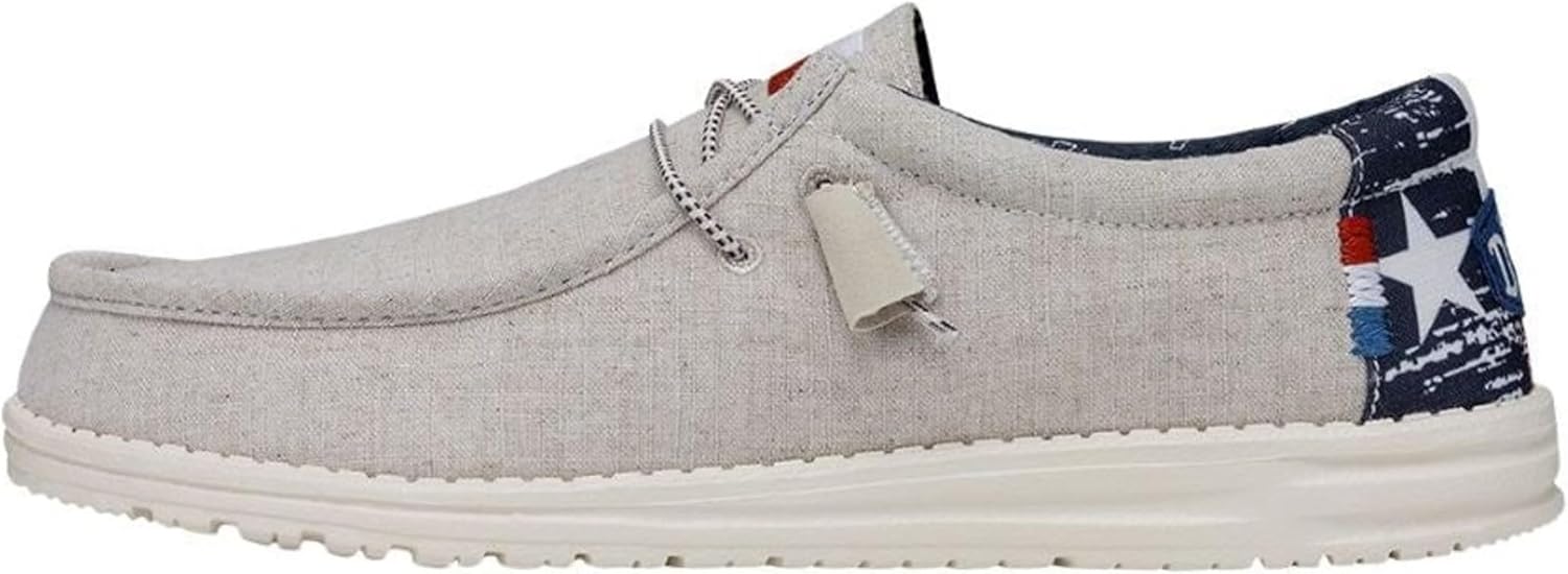 HEYDUDE Men’s Wally-Texas Canvas Off White Size 9 | Men’s Shoes | Men Slip-on Loafers | Comfortable & Light-Weight