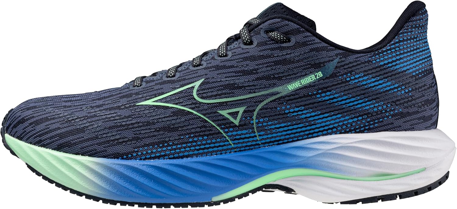 Mizuno Wave Rider 28 Mens Running Shoe, Vintage Indigo-Neo Mint, 11.5