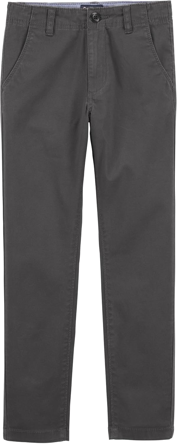 OSHKOSH B’GOSH Boys’ Slim Stretch Chino Pants, Solid Dark Grey, 8