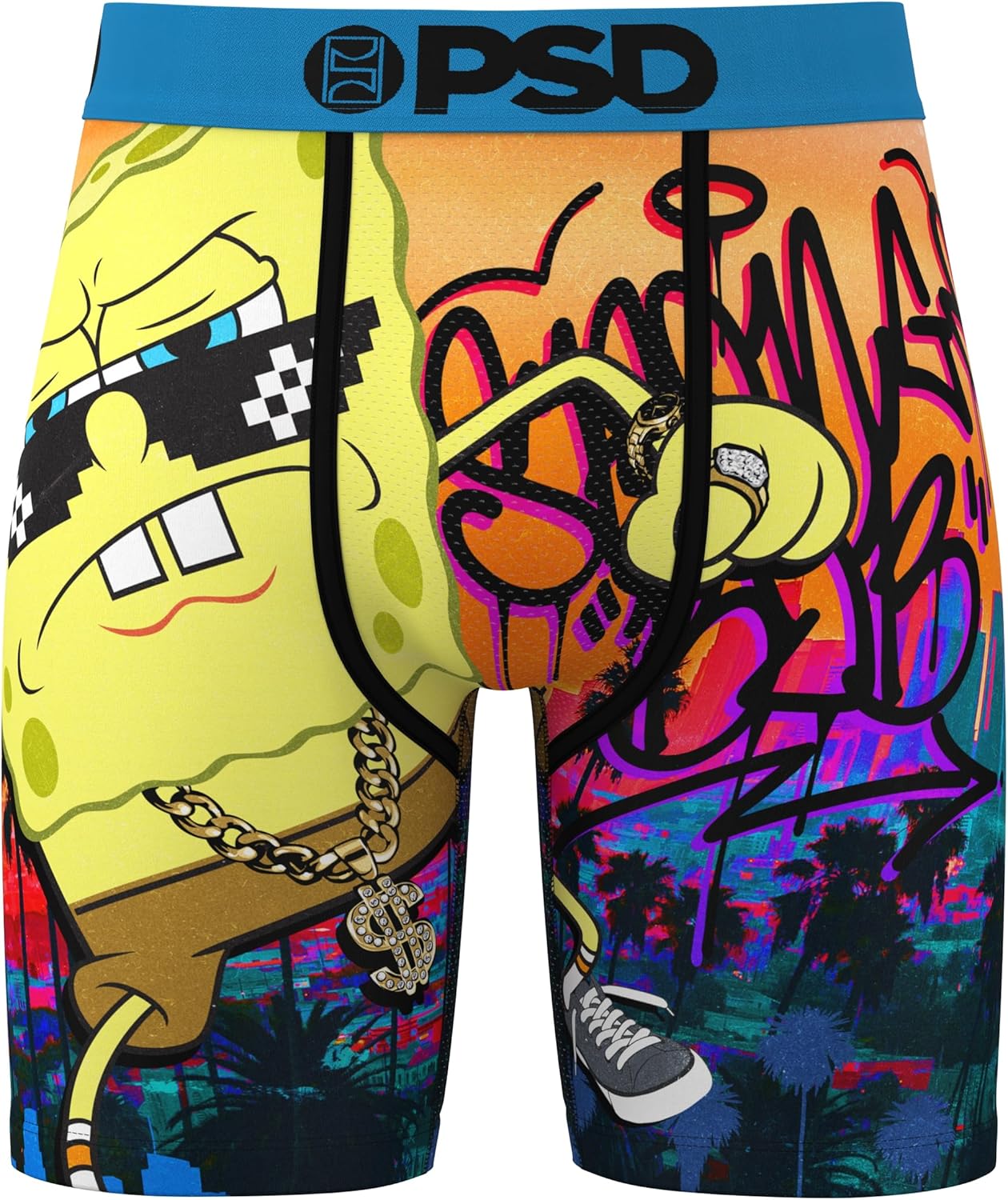 PSD Men’s Boxer Briefs – Spongebob West Coast, 7 Inch Inseam, Moisture-Wicking, 4-Way Stretch, Boxer Briefs for Men, Medium