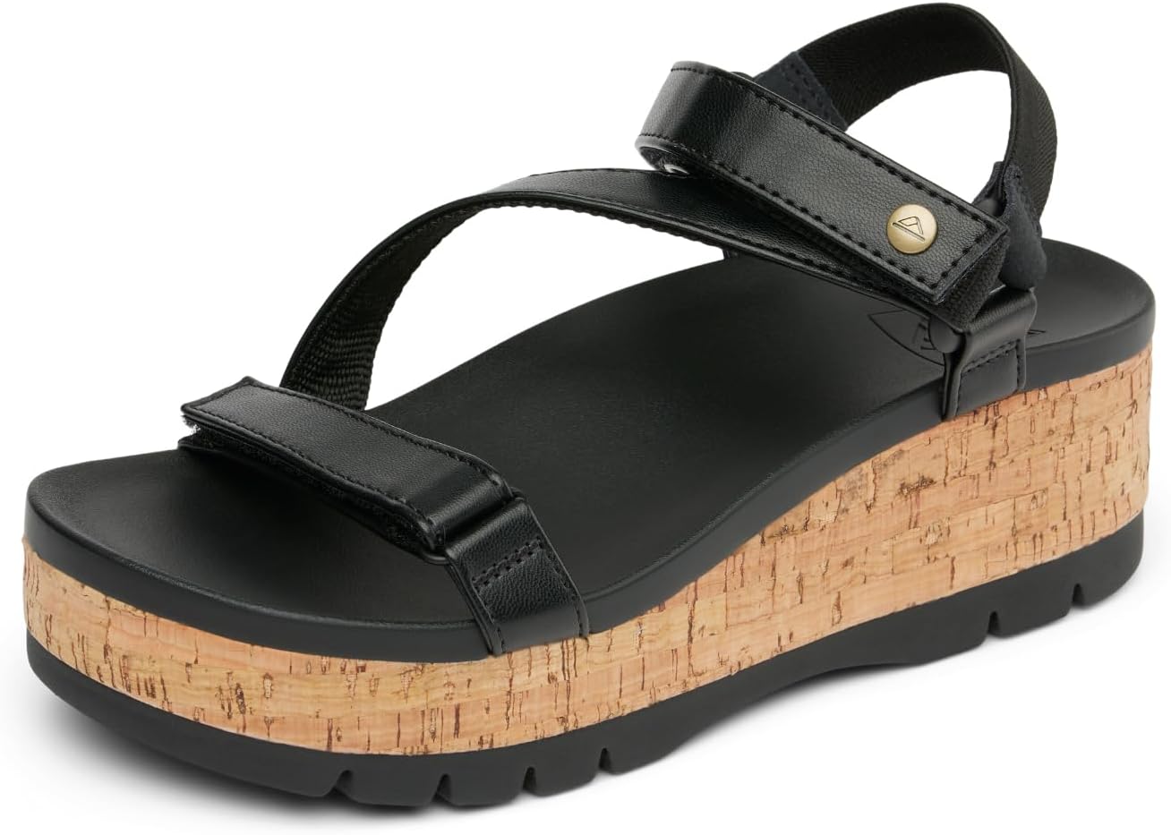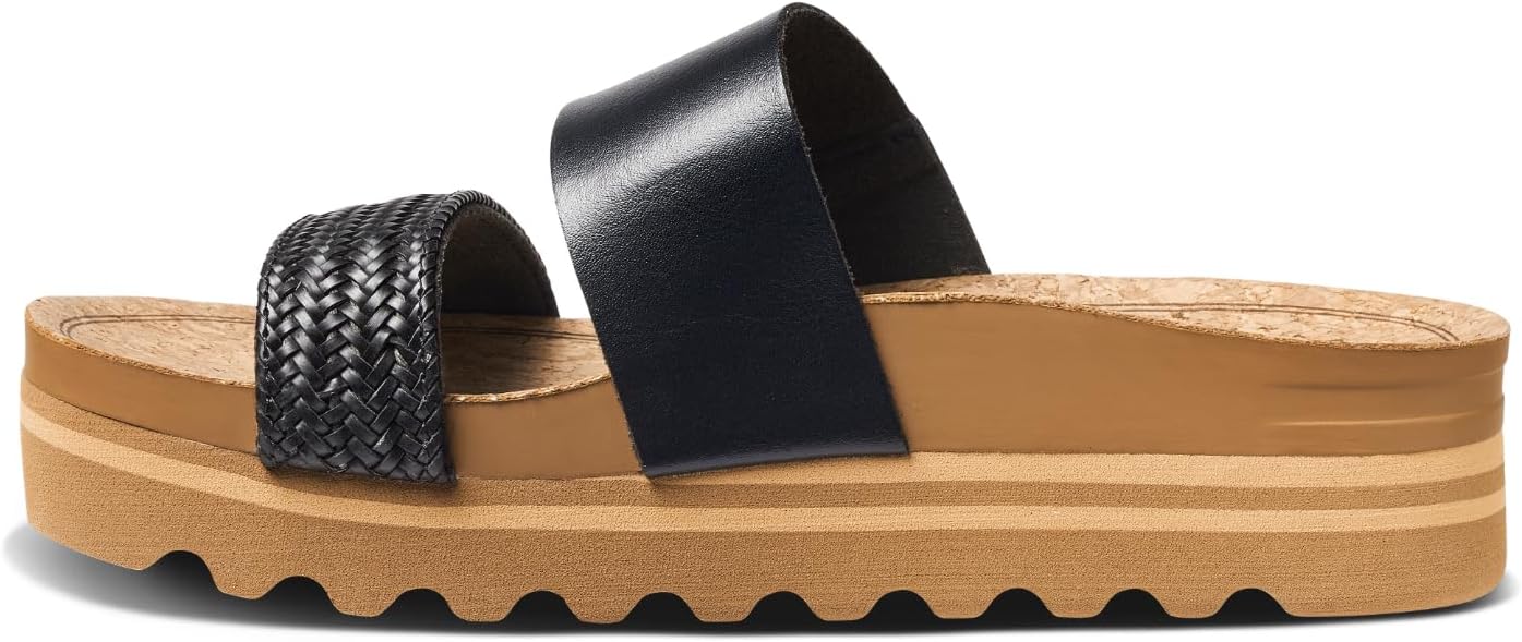 REEF Women’s Vista Higher Luna Platform Sandal, Adjustable Strap, Black Cork, 7.5