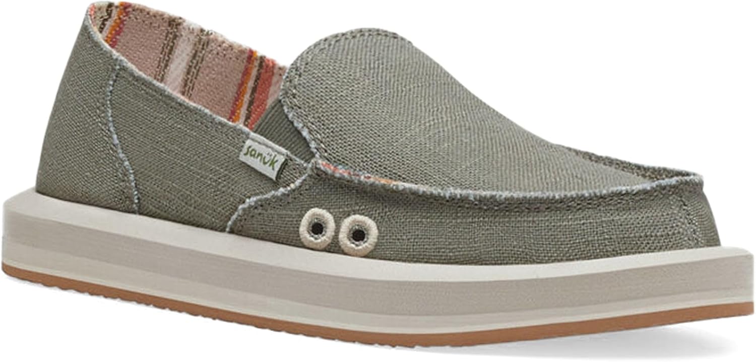 Sanuk Womens Donna Soft Top Hemp Loafers | Womens Shoes | Slip On Shoes for Women | Women’s Slip-on Loafers | Memory Foam Footbed, Smokey Olive, 10
