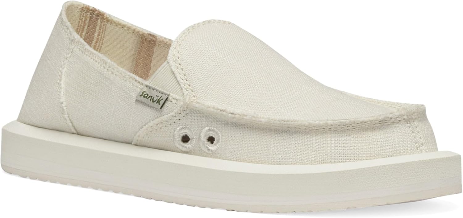 Sanuk Womens Donna Soft Top Hemp Loafers | Womens Shoes | Slip On Shoes for Women | Women’s Slip-on Loafers | Memory Foam Footbed, White, 10