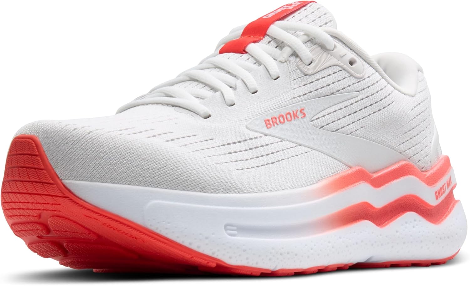 Brooks Women’s Ghost Max 2 Neutral Running & Walking Shoe – White/Hot Coral – 11.5 Medium