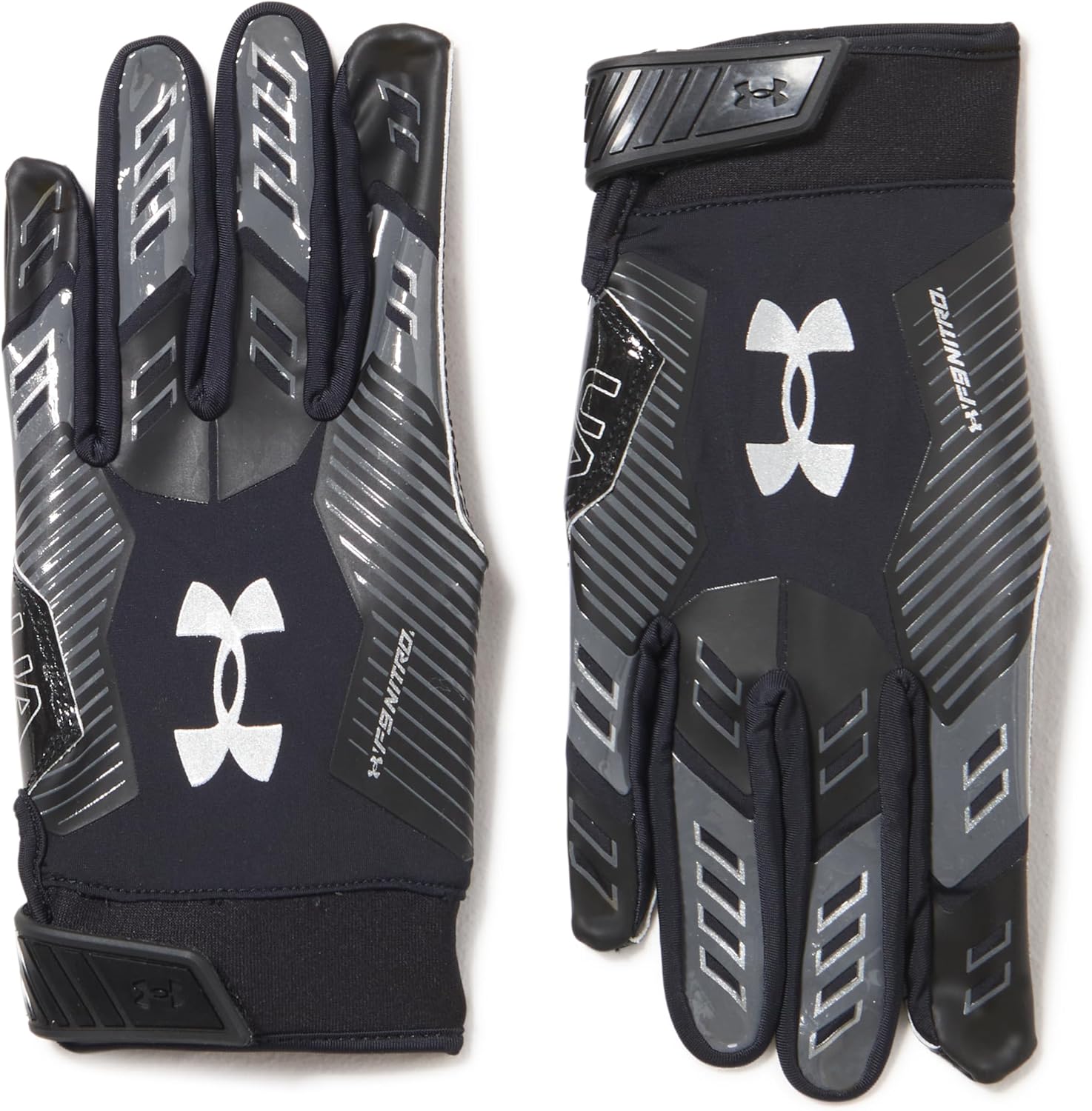 Under Armour Men’s F9 Nitro Football Gloves, (001) Black/Castlerock/Metallic Silver, Medium
