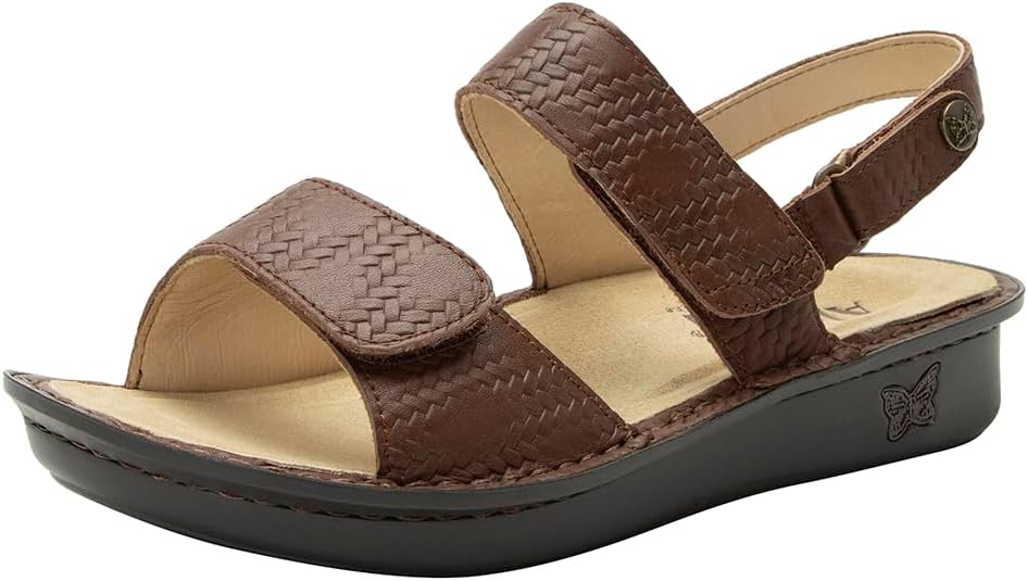 Alegria Women’s Verona Basketry Coffee Lightweight Arch Support Comfort Ankle Strap Leather Slide Sandal 9.5-10 M US