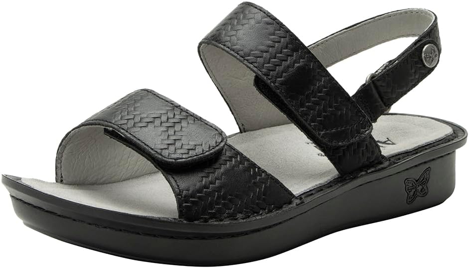 Alegria Women’s Verona Basketry Black Lightweight Arch Support Comfort Ankle Strap Leather Slide Sandal 5-5.5 M US