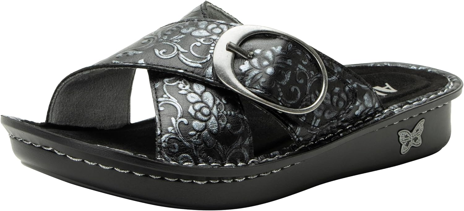 Alegria Women’s Vanya Chandelier Pewter Lightweight Arch Support Comfort Leather Open Toe Big Buckle Slide Sandal 10.5-11 M US