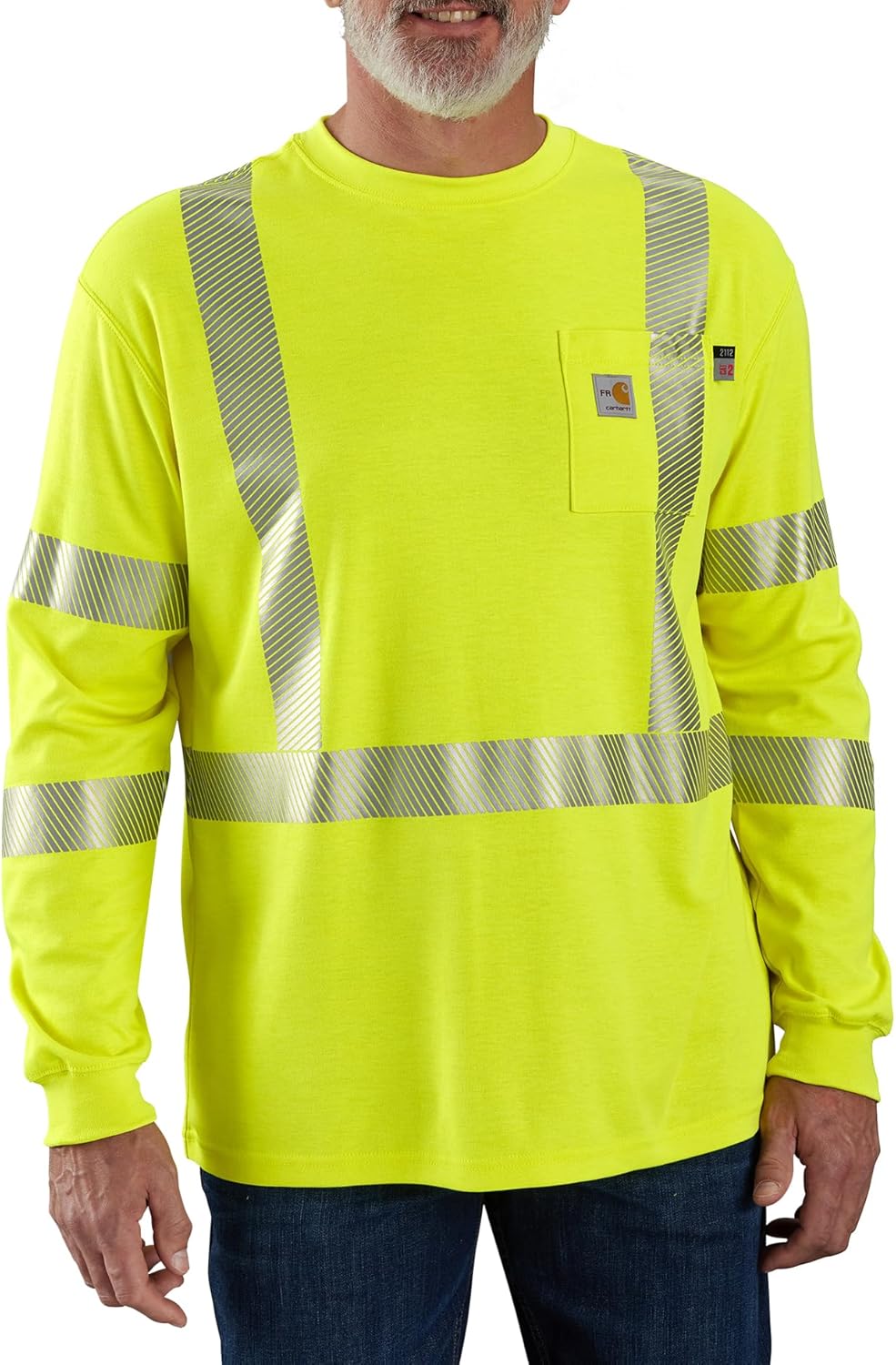 Carhartt Men’s Flame Resistant High-Visibility Force Loose Fit Midweight Long-Sleeve Class 3 Pocket T-Shirt, Brite Lime, 4X-Large