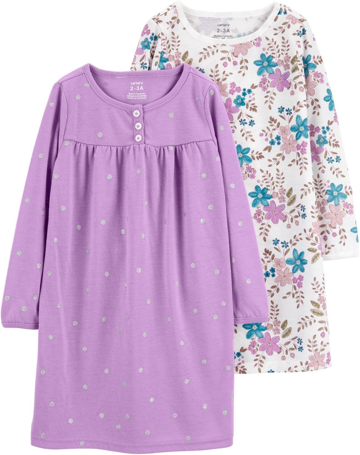 Carter’s Girls’ 2 Pk Gown Poly 373g082 (Purple/Floral, 4-5)