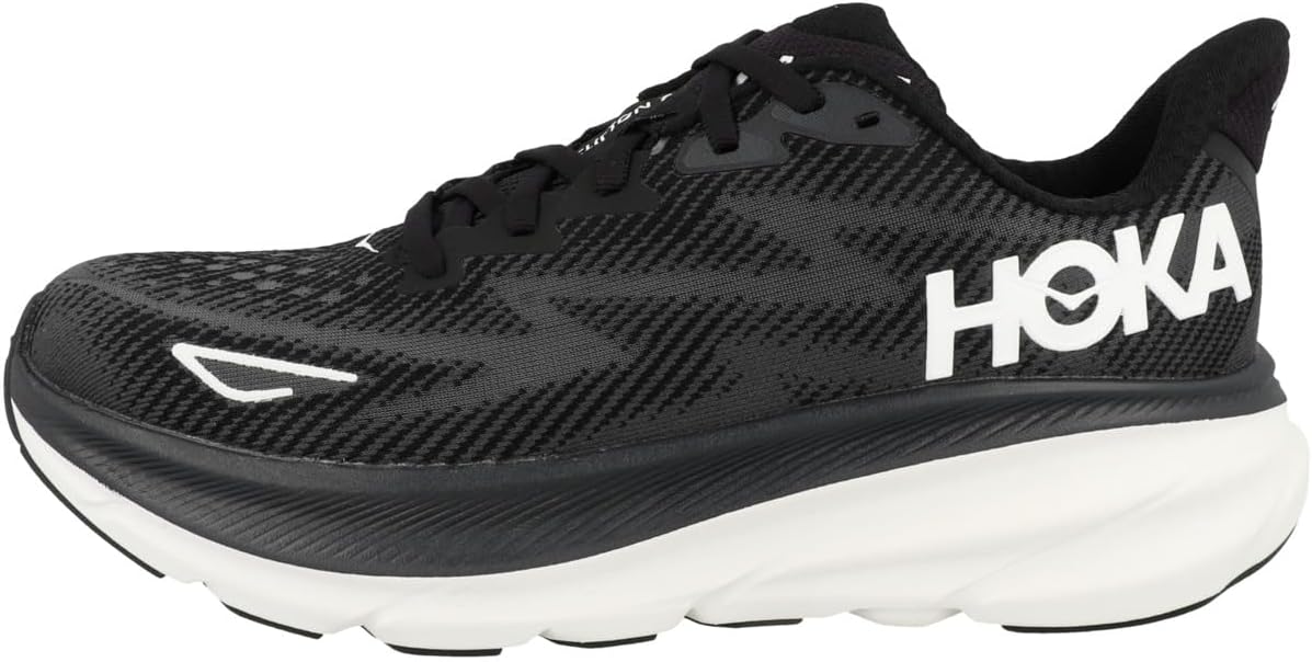 Hoka Women’s Clifton 9 Sneaker, Black/White, 9 Wide